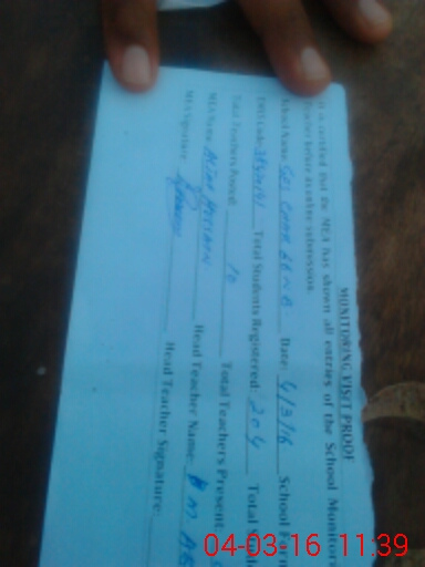 | Attendance Register | Head Teacher | MEA with School | Visit Proof |