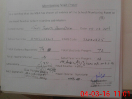 | Attendance Register | Head Teacher | MEA with School | Visit Proof |