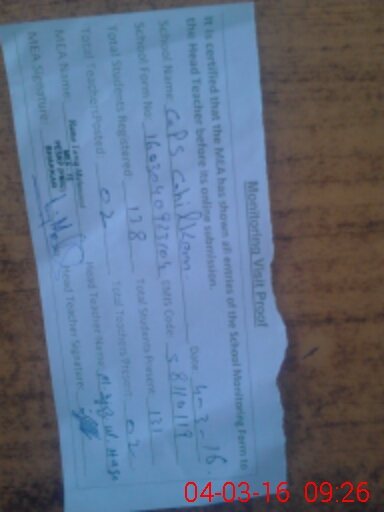 | Attendance Register | Head Teacher | MEA with School | Visit Proof |