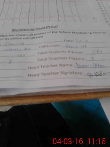 | Attendance Register | Head Teacher | MEA with School | Visit Proof |