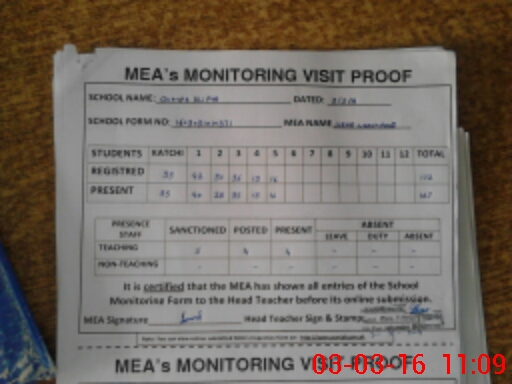 | Attendance Register | Head Teacher | MEA with School | Visit Proof |