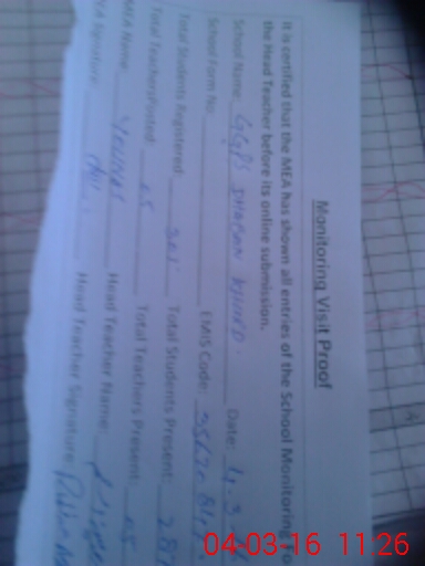 | Certified that this School was Inspected by the Undersigned MEA/DMO Today and the Information Stated Above is as Per Record. | |||||