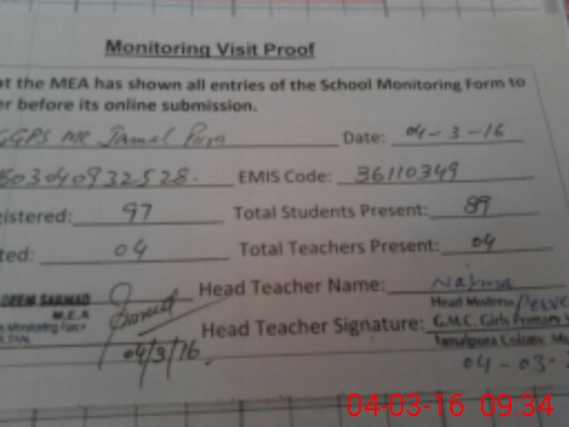 | EMIS Code: 36110349 | Name of School: GGPS MC JAMAL PURA | |||