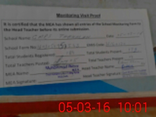 | Certified that this School was Inspected by the Undersigned MEA/DMO Today and the Information Stated Above is as Per Record. | |||||