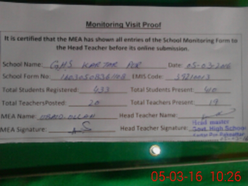 | EMIS Code: 39210013 | Name of School: GHS KARTAR PUR | |||