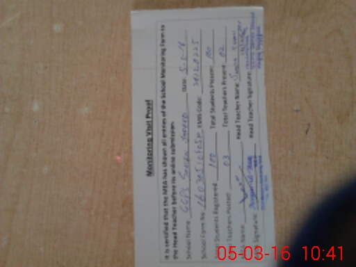 | Remarks (Use Separate Page if Required): 1Supplementary reading material and teacher guide available yes utilization yes 2 Farasat Bano pst found absent since 31st August 2015 | |||||