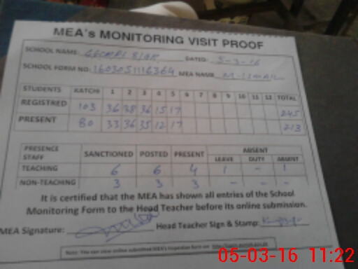 | Certified that this School was Inspected by the Undersigned MEA/DMO Today and the Information Stated Above is as Per Record. | |||||
