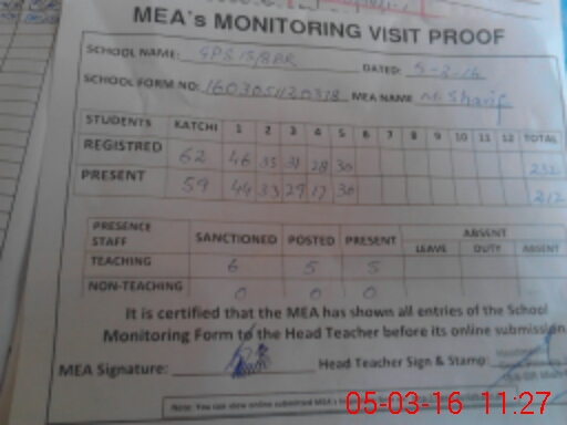 | Attendance Register | Head Teacher | MEA with School | Visit Proof |