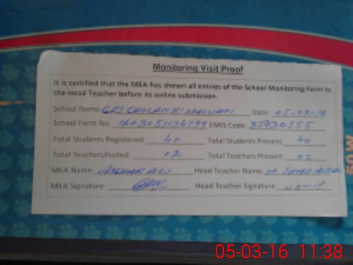 | EMIS Code: 35430555 | Name of School: GPS GHOLAN KE MALIAN | |||