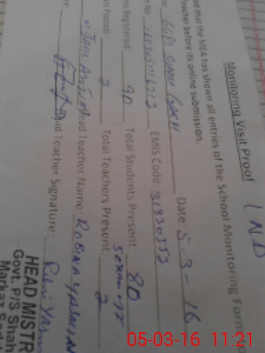 | EMIS Code: 31330552 | Name of School: GGPS SHAH GARH | |||