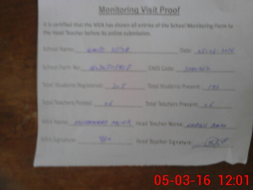 | Certified that this School was Inspected by the Undersigned MEA/DMO Today and the Information Stated Above is as Per Record. | |||||