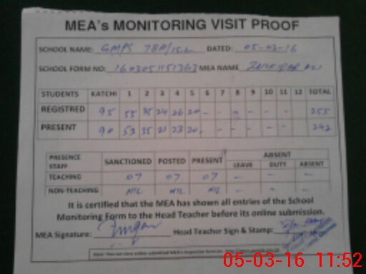 | Certified that this School was Inspected by the Undersigned MEA/DMO Today and the Information Stated Above is as Per Record. | |||||