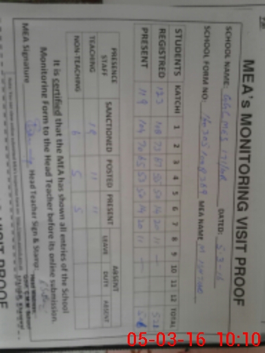 | Certified that this School was Inspected by the Undersigned MEA/DMO Today and the Information Stated Above is as Per Record. | |||||