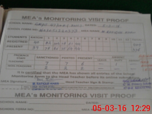 | Attendance Register | Head Teacher | MEA with School | Visit Proof |