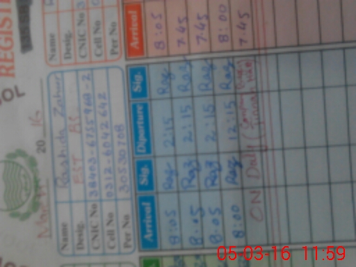 | CNIC | Full Name | Designation | R/C | Absence During Last Calender Month |