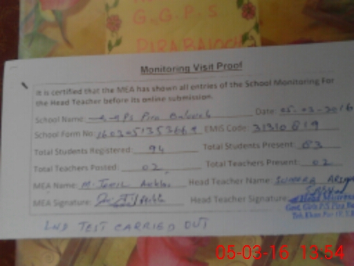 | Certified that this School was Inspected by the Undersigned MEA/DMO Today and the Information Stated Above is as Per Record. | |||||