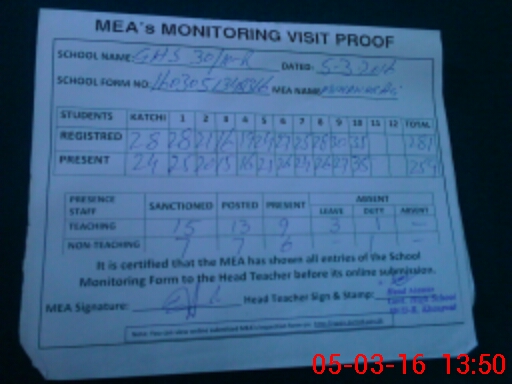| Attendance Register | Head Teacher | MEA with School | Visit Proof |