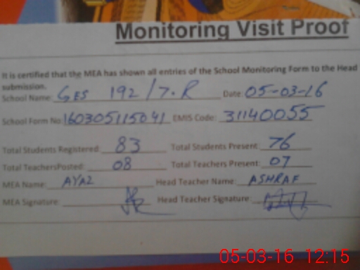 | EMIS Code: 31140055 | Name of School: GES CHAK NO. 192/7-R | |||