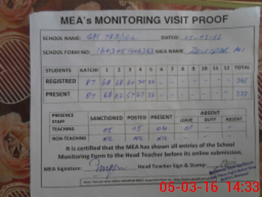 | Attendance Register | Head Teacher | MEA with School | Visit Proof |