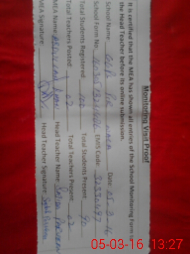 | Certified that this School was Inspected by the Undersigned MEA/DMO Today and the Information Stated Above is as Per Record. | |||||