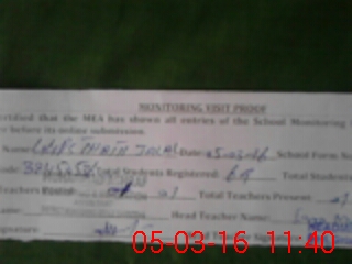 | Attendance Register | Head Teacher | MEA with School | Visit Proof |