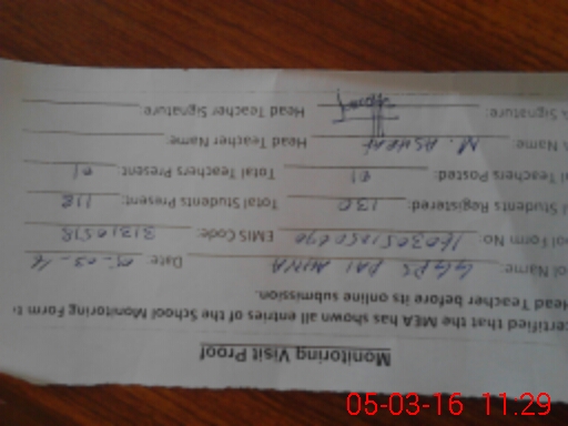 | Attendance Register | Head Teacher | MEA with School | Visit Proof |