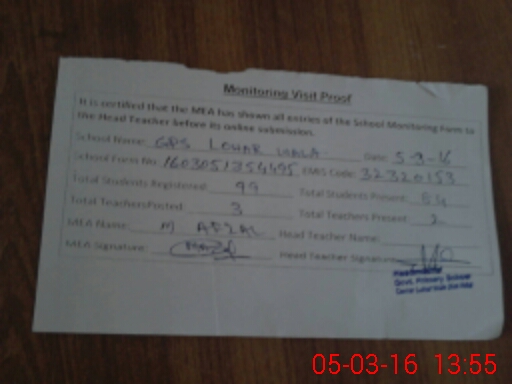 | EMIS Code: 32320153 | Name of School: GPS LOHAR WALA | |||