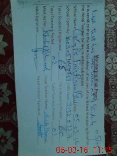 | Certified that this School was Inspected by the Undersigned MEA/DMO Today and the Information Stated Above is as Per Record. | |||||