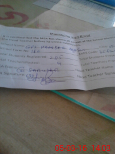 | Attendance Register | Head Teacher | MEA with School | Visit Proof |