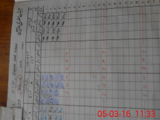 | CNIC | Full Name | Designation | R/C | Absence During Last Calender Month |