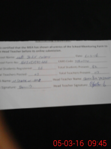 | Monitoring Date: 05-03-2016 | Start Time: 05-03-2016 09:25 AM | End Time: 05-03-2016 09:46 AM | Name of MEA: Mu**** Iz**** UlHa**** | |
