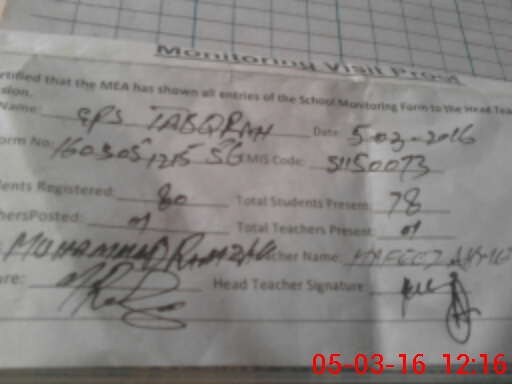 | EMIS Code: 31150073 | Name of School: GPS TABQRAH | |||