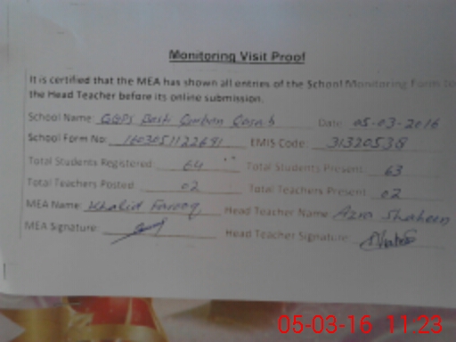 | EMIS Code: 31320538 | Name of School: GGPS BASTI QURBAN QASAB | |||