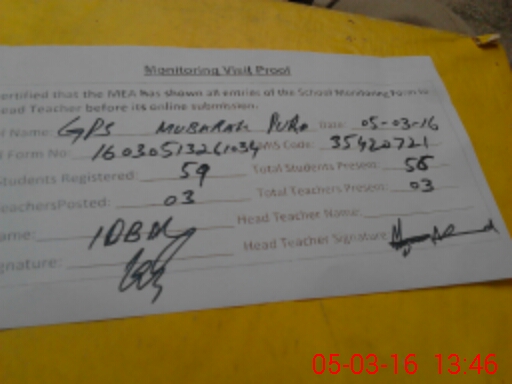 | EMIS Code: 35420721 | Name of School: GPS MUBARAK PURA | |||