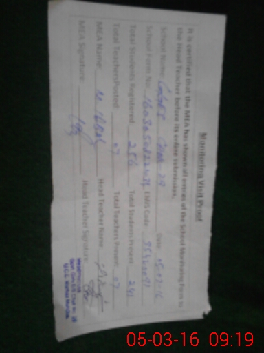 | Total no. of Classrooms: 6 No. of Classrooms Used for Teaching: 6 No. of Classrooms Storing Old Furniture, FTBs, etc: 0Comments if Any: Bulavi perform duty in Dy DEO office muridke Teacher Asia perveen is absent from school on 04 03 2016 |