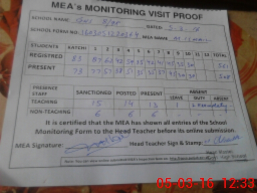| Attendance Register | Head Teacher | MEA with School | Visit Proof |
