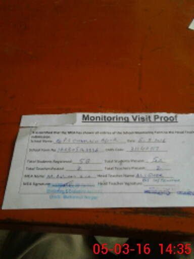 | Attendance Register | Head Teacher | MEA with School | Visit Proof |