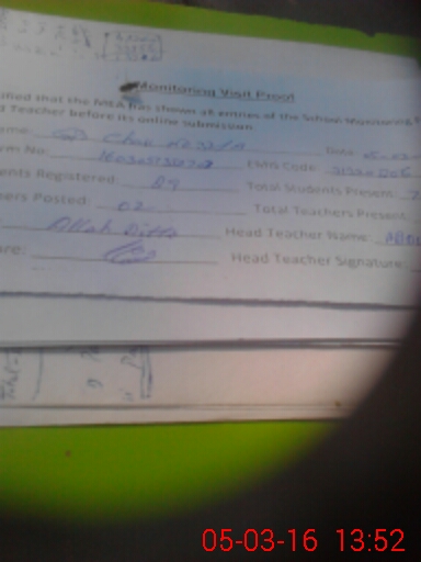 | Name: SA**** UL**** Designation: (School Headmaster's/Headmistress's) PST Phone/Cell Number: 03**** |