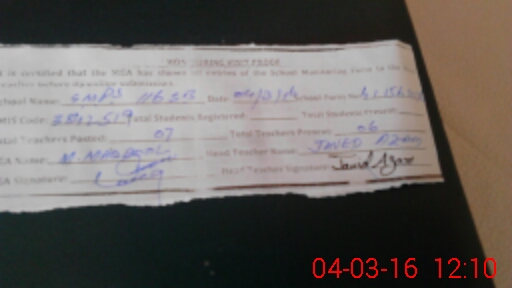 | Certified that this School was Inspected by the Undersigned MEA/DMO Today and the Information Stated Above is as Per Record. | |||||
