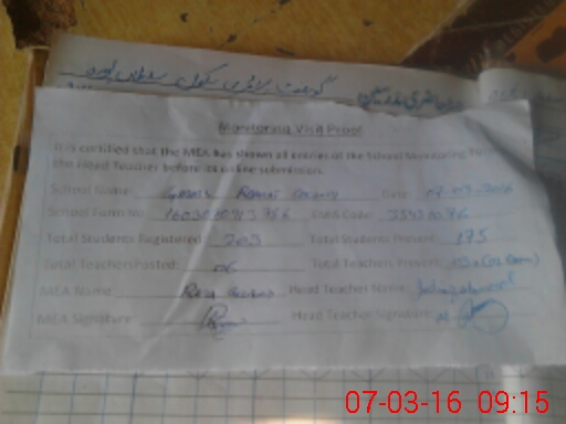 | Attendance Register | Head Teacher | MEA with School | Visit Proof |