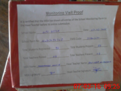 | Attendance Register | Head Teacher | MEA with School | Visit Proof |