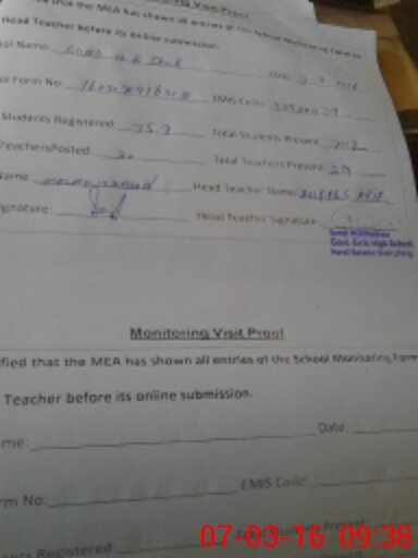 | Certified that this School was Inspected by the Undersigned MEA/DMO Today and the Information Stated Above is as Per Record. | |||||