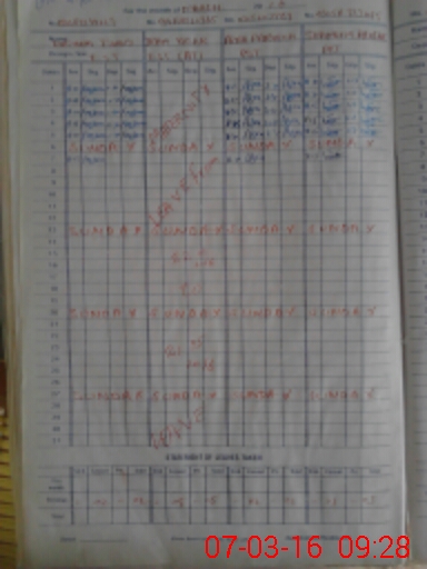 | CNIC | Full Name | Designation | R/C | Absence During Last Calender Month |