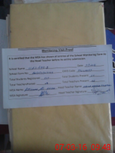 | Attendance Register | Head Teacher | MEA with School | Visit Proof |