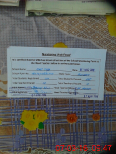 | Certified that this School was Inspected by the Undersigned MEA/DMO Today and the Information Stated Above is as Per Record. | |||||