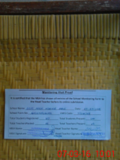 | Monitoring Date: 07-03-2016 | Start Time: 07-03-2016 09:26 AM | End Time: 07-03-2016 10:01 AM | Name of MEA: Mu**** Ha**** (R**** | |