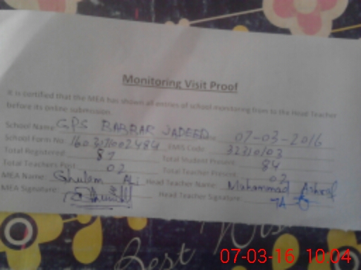 | EMIS Code: 32310103 | Name of School: GPS BABBER JADEED | |||