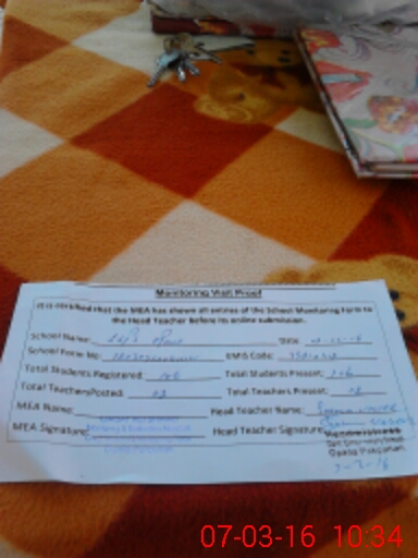 | Attendance Register | Head Teacher | MEA with School | Visit Proof |
