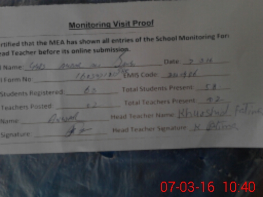 | Certified that this School was Inspected by the Undersigned MEA/DMO Today and the Information Stated Above is as Per Record. | |||||
