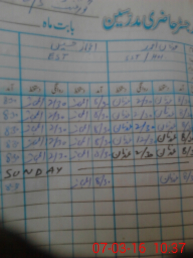 | Name: SA**** AL**** Designation: (School Headmaster's/Headmistress's) Est General Phone/Cell Number: 03**** |
